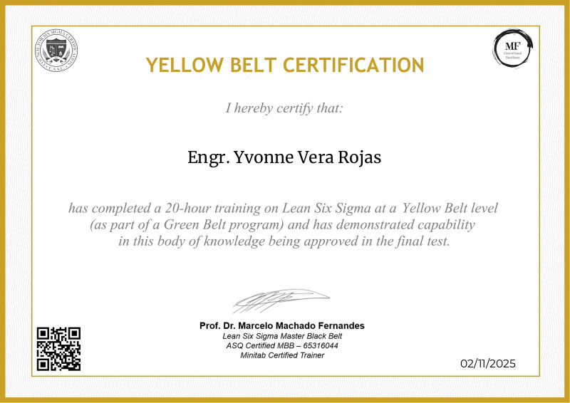 Delving into the intermediate principles of Lean Six Sigma, the Yellow Belt certification provided by MF OPEX, guided by Professor Marcelo Fernandes, marks a significant progression in operational excellence training. Through a meticulously structured curriculum blending advanced theories with practical application, participants deepen their understanding of process optimization, advanced data analysis, and project leadership. Professor Fernandes' renowned expertise enriches the program with cutting-edge methodologies, empowering learners to spearhead impactful improvements within their organizations. Serving as a pivotal milestone in professional development, this certification not only opens doors to larger-scale projects but also fosters the confidence and skills needed to drive transformative change across diverse industry landscapes.
