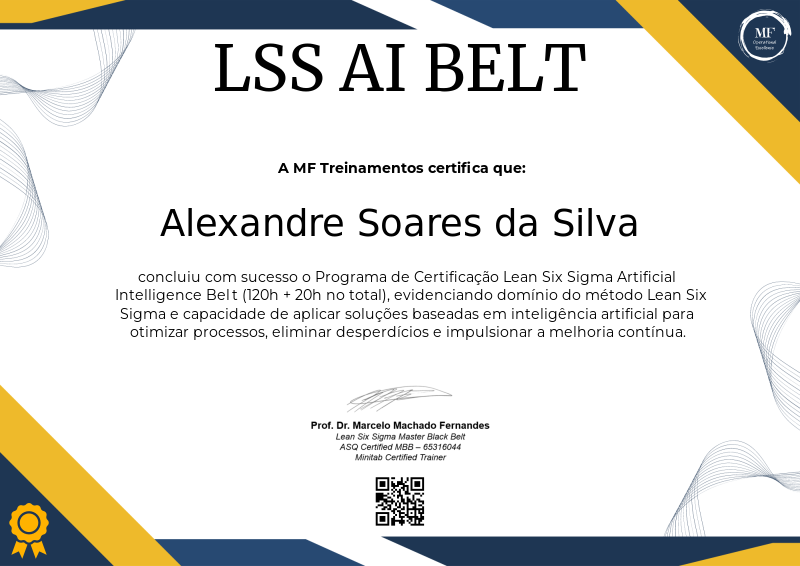 O Lean Six Sigma Artificial Intelligence Belt é uma certificação especializada que integra os princípios do Lean Six Sigma com as capacidades da inteligência artificial. Esta certificação equipa os profissionais com ferramentas para analisar dados, otimizar processos e eliminar desperdícios de forma mais eficaz por meio de lSS e IA. Ao combinar metodologias estatísticas com aprendizado de máquina e automação, os indivíduos que possuem esta certificação podem impulsionar a melhoria contínua, aumentar a eficiência operacional e fornecer resultados mensuráveis em ambientes complexos, aproveitando a tecnologia para resolver problemas com mais rapidez e precisão.