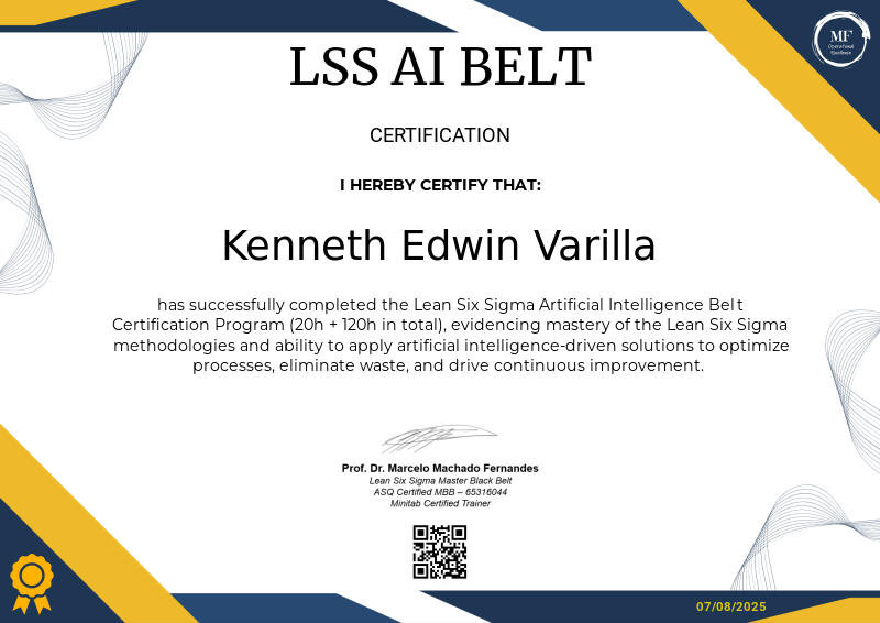 The Lean Six Sigma Artificial Intelligence Belt is a specialized certification that integrates the core principles of Lean Six Sigma with the cutting-edge capabilities of artificial intelligence. This certification equips professionals with the tools to analyze data, optimize processes, and eliminate waste more effectively through AI-driven insights. By blending statistical methodologies with machine learning and automation, individuals holding this certification can drive continuous improvement, enhance operational efficiency, and deliver measurable results in complex environments, leveraging technology to solve problems faster and with greater precision.