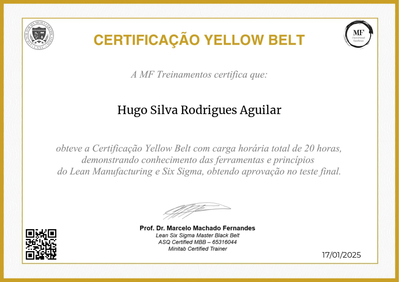 Adentrando nos princípios intermediários do Lean Six Sigma, a certificação Yellow Belt oferecida pela MF OPEX, sob a orientação do Professor Marcelo Fernandes, marca um avanço significativo no treinamento de excelência operacional. Através de um currículo meticulosamente estruturado que mescla teorias avançadas com aplicação prática, os participantes aprofundam seu entendimento em otimização de processos, análise avançada de dados e liderança de projetos. A renomada expertise do Professor Fernandes enriquece o programa com metodologias de ponta, capacitando os aprendizes a liderar melhorias impactantes dentro de suas organizações. Servindo como um marco pivotal no desenvolvimento profissional, esta certificação não apenas abre portas para projetos em maior escala, mas também cultiva a confiança e habilidades necessárias para impulsionar mudanças transformadoras em diversos setores da indústria.