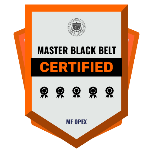 Imersos nos princípios avançados do Lean Six Sigma, a certificação Master Black Belt, concedida pela MF OPEX sob a orientação estimada do Professor Marcelo Fernandes, representa o ápice em excelência operacional para análise e solução de problemas complexos. Com um conhecimento e expertise inigualáveis, Master Black Belts possuem uma compreensão abrangente da metodologia Lean Six Sigma e habilidades avançadas de liderança, capacitando-os a promover mudanças transformadoras em um nível estratégico dentro de suas organizações. Servindo como o ponto mais alto do desenvolvimento profissional, esta certificação não apenas confirma a proficiência dos indivíduos para liderar iniciativas altamente complexas e estratégicas, mas também os capacita a moldar o futuro de suas organizações, cultivando uma cultura de aprimoramento contínuo e excelência em todas as áreas da indústria.