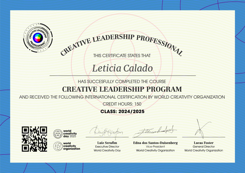 Creative Leadership Professional é a certificação internacional emitida pela World Creativity Organization para as lideranças que concluíram com sucesso o Creative Leadership Program e realizaram a entrega do World Creativity Day em suas cidades.