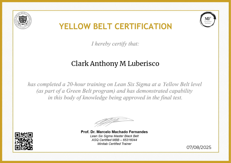 Delving into the intermediate principles of Lean Six Sigma, the Yellow Belt certification provided by MF OPEX, guided by Professor Marcelo Fernandes, marks a significant progression in operational excellence training. Through a meticulously structured curriculum blending advanced theories with practical application, participants deepen their understanding of process optimization, advanced data analysis, and project leadership. Professor Fernandes' renowned expertise enriches the program with cutting-edge methodologies, empowering learners to spearhead impactful improvements within their organizations. Serving as a pivotal milestone in professional development, this certification not only opens doors to larger-scale projects but also fosters the confidence and skills needed to drive transformative change across diverse industry landscapes.