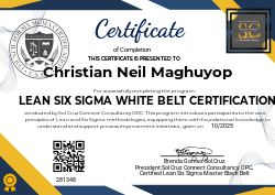 Upon successful completion, learners will have demonstrated their understanding of Lean Six Sigma concepts and their readiness to support improvement initiatives in their workplace.
