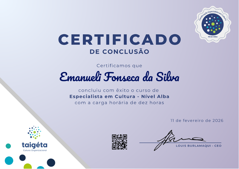 Para ganhar esta medalha e certificado, o aluno concluiu a carga horária do módulo 1 - Fundamentos da Cultura e entregou seu trabalho de conclusão de módulo com nota satisfatória.