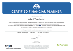 Símbolo de excelência em planejamento financeiro, o selo CFP® - Certified Financial Planner é a mais respeitada certificação internacional de distinção, garantido ao profissional certificado o reconhecimento de suas habilidades e competências na atividade de planejador financeiro pessoal e familiar por parte de seus clientes, parceiros e do mercado.