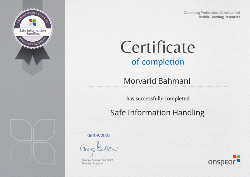 Awarded for completing the Safe Information Handling CPD course from Anspear.