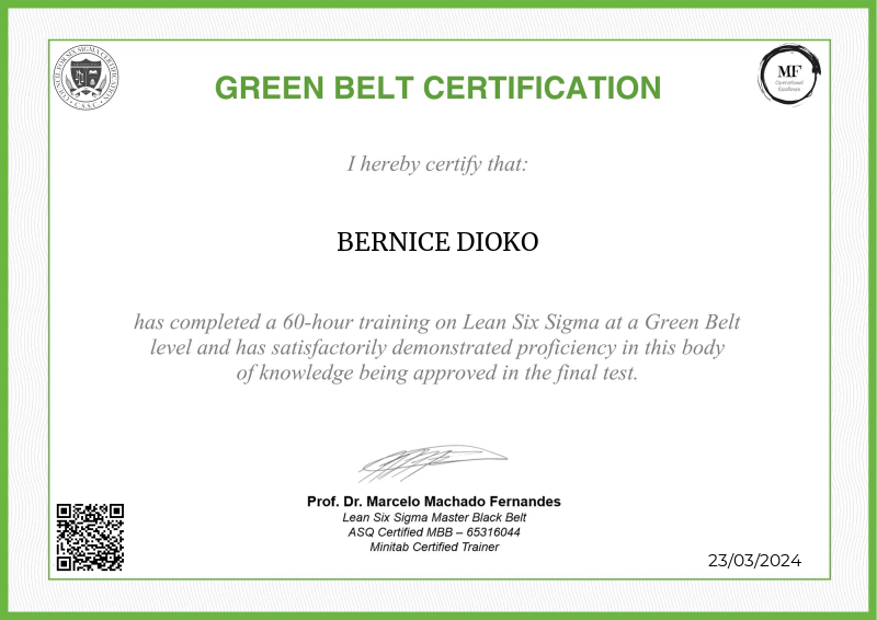 Exploring the principles of Lean Six Sigma, the Green Belt certification offered by MF OPEX, under the mentorship of Professor Marcelo Fernandes, represents a pivotal step forward in operational excellence training. Equipped with an extensive curriculum blending advanced theories with hands-on application, participants not only deepen their understanding of process optimization, advanced data analysis, and project leadership but also become adept at spearheading Lean Six Sigma projects. Professor Fernandes' esteemed guidance enriches the program with cutting-edge methodologies, empowering learners to drive substantial improvements within their organizations. Serving as a significant milestone in professional development, this certification not only qualifies individuals to lead larger-scale projects but also instills the confidence and expertise needed to enact transformative change across diverse industry landscapes.
