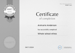 Awarded for passing the end of module test of the online/mobile course Whole school ethos.