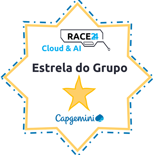 A Race Badge Estrela do Grupo faz parte de uma iniciativa dentro do Capgemini Race, programa focado em certificações, projetado para impulsionar o desenvolvimento das nossas pessoas. Neste programa gamificado, incentivamos e apoiamos nossos profissionais a alcançarem novos patamares de conhecimento através da obtenção de certificações em AWS, Microsoft, Google e SRE. Todos os integrantes de um grupo de estudo que obterem uma certificação, receberão a Race Badge Estrela do Grupo.