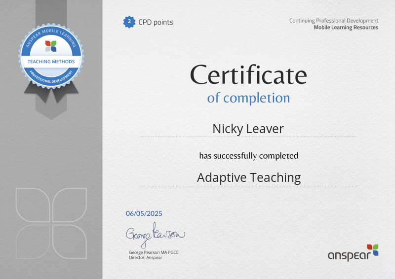 Awarded for completing the Adaptive Teaching CPD course from the IAPS Digital Academy.