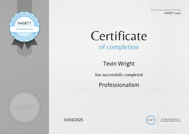 This module will explore what it means to be professional in an educational setting, and will equip mentors in supporting mentees to emulate professionalism.