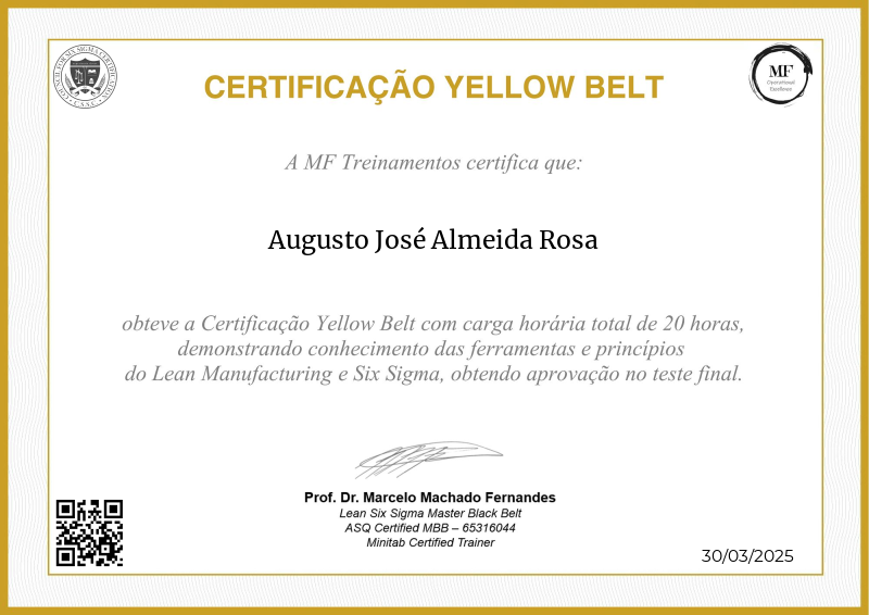 Adentrando nos princípios intermediários do Lean Six Sigma, a certificação Yellow Belt oferecida pela MF OPEX, sob a orientação do Professor Marcelo Fernandes, marca um avanço significativo no treinamento de excelência operacional. Através de um currículo meticulosamente estruturado que mescla teorias avançadas com aplicação prática, os participantes aprofundam seu entendimento em otimização de processos, análise avançada de dados e liderança de projetos. A renomada expertise do Professor Fernandes enriquece o programa com metodologias de ponta, capacitando os aprendizes a liderar melhorias impactantes dentro de suas organizações. Servindo como um marco pivotal no desenvolvimento profissional, esta certificação não apenas abre portas para projetos em maior escala, mas também cultiva a confiança e habilidades necessárias para impulsionar mudanças transformadoras em diversos setores da indústria.