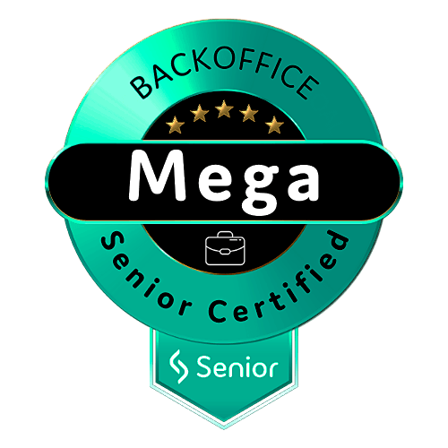 Esse badge é um reconhecimento para o profissional certificado em ERP Mega - Backoffice. Ele representa uma jornada composta pelos módulos: