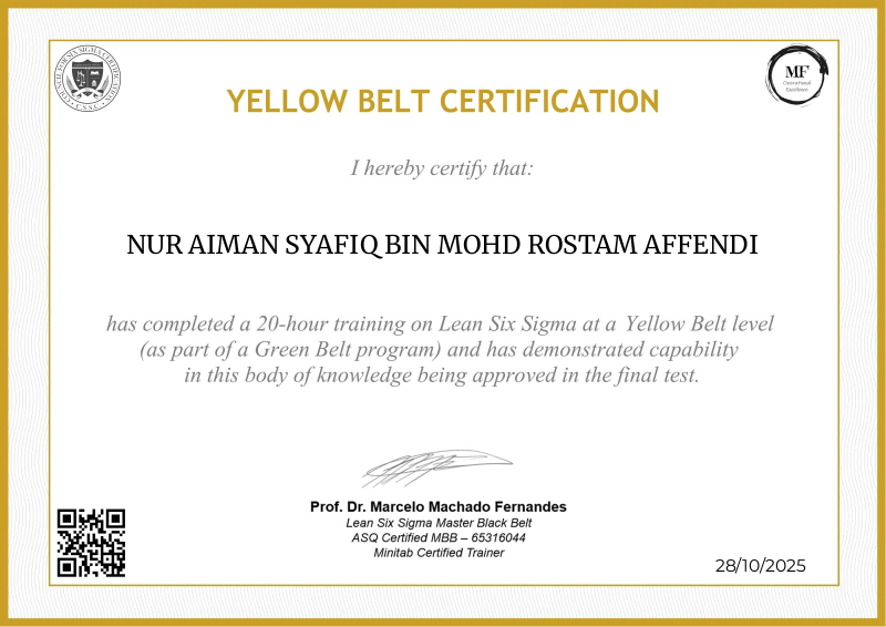 Delving into the intermediate principles of Lean Six Sigma, the Yellow Belt certification provided by MF OPEX, guided by Professor Marcelo Fernandes, marks a significant progression in operational excellence training. Through a meticulously structured curriculum blending advanced theories with practical application, participants deepen their understanding of process optimization, advanced data analysis, and project leadership. Professor Fernandes' renowned expertise enriches the program with cutting-edge methodologies, empowering learners to spearhead impactful improvements within their organizations. Serving as a pivotal milestone in professional development, this certification not only opens doors to larger-scale projects but also fosters the confidence and skills needed to drive transformative change across diverse industry landscapes.