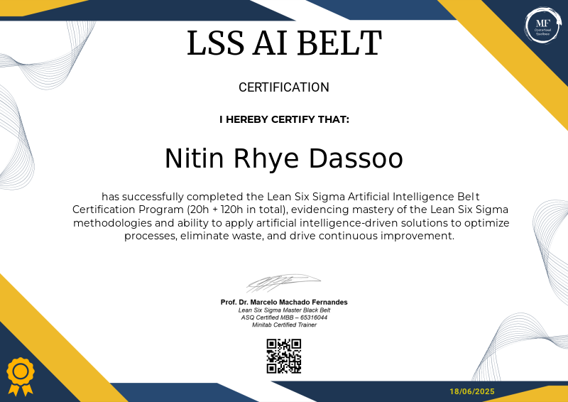The Lean Six Sigma Artificial Intelligence Belt is a specialized certification that integrates the core principles of Lean Six Sigma with the cutting-edge capabilities of artificial intelligence. This certification equips professionals with the tools to analyze data, optimize processes, and eliminate waste more effectively through AI-driven insights. By blending statistical methodologies with machine learning and automation, individuals holding this certification can drive continuous improvement, enhance operational efficiency, and deliver measurable results in complex environments, leveraging technology to solve problems faster and with greater precision.