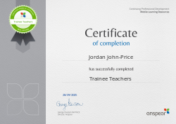 Awarded for completing the Trainee Teachers CPD course from Anspear.