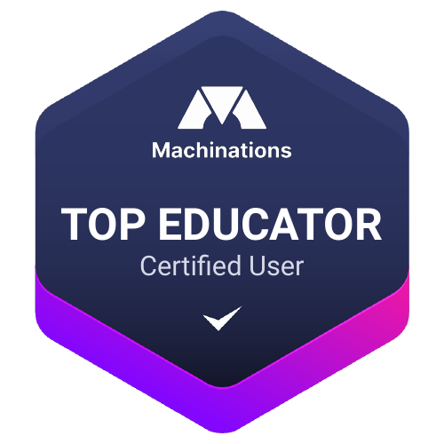 The TOP EDUCATOR badge is awarded to esteemed members of academia who have consistently brought a stream of students to Machinations and have taught the platform over the years.