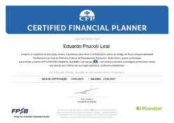Símbolo de excelência em planejamento financeiro, o selo CFP® - Certified Financial Planner é a mais respeitada certificação internacional de distinção, garantido ao profissional certificado o reconhecimento de suas habilidades e competências na atividade de planejador financeiro pessoal e familiar por parte de seus clientes, parceiros e do mercado.
