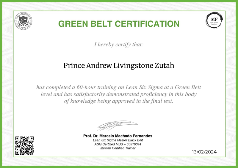 Exploring the principles of Lean Six Sigma, the Green Belt certification offered by MF OPEX, under the mentorship of Professor Marcelo Fernandes, represents a pivotal step forward in operational excellence training. Equipped with an extensive curriculum blending advanced theories with hands-on application, participants not only deepen their understanding of process optimization, advanced data analysis, and project leadership but also become adept at spearheading Lean Six Sigma projects. Professor Fernandes' esteemed guidance enriches the program with cutting-edge methodologies, empowering learners to drive substantial improvements within their organizations. Serving as a significant milestone in professional development, this certification not only qualifies individuals to lead larger-scale projects but also instills the confidence and expertise needed to enact transformative change across diverse industry landscapes.
