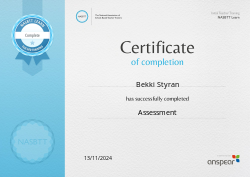 Completed the NASBTT Learn module Assessment. 1 hour of self-directed learning.