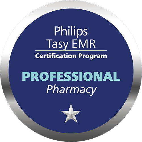 A credencial PROFESSIONAL PHARMACY é composta pelo tema Farmácia Central, que abrange a dispensação de medicamentos padronizados e não-padronizados e a gestão do plano terapêutico; e Farmácia Satélite, que abrange a execução da prescrição, a prescrição de emergência e a devolução do material do paciente.
