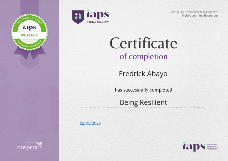 Awarded for completing the Being Resilient CPD course from the IAPS Digital Academy.