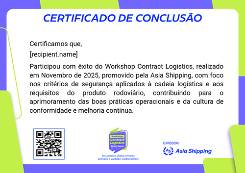 Para receber a Badge do Workshop Contract Logistics, é necessário ter participado do evento realizado em 2025, promovido pela Asia Shipping.