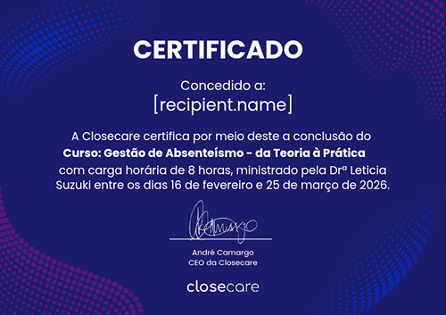 A Closecare é o único software de gestão de absenteísmo de ponta a ponta para impactar a sua empresa com diminuição do absenteísmo, aumento da produtividade e melhoria do clima organizacional.