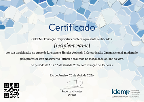 Este curso foi criado para ampliar esse olhar. Graças ao conhecimento de técnicas de redação eficazes, os participantes descobrirão como a clareza reduz erros, evita retrabalho, economiza recursos, melhora a qualidade da prestação do serviço e aproxima as pessoas, garantindo-lhes o direito fundamental de compreender.