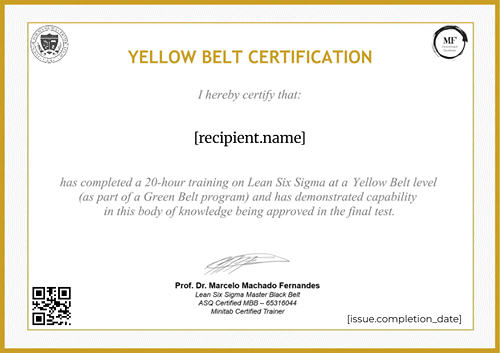 Delving into the intermediate principles of Lean Six Sigma, the Yellow Belt certification provided by MF OPEX, guided by Professor Marcelo Fernandes, marks a significant progression in operational excellence training. Through a meticulously structured curriculum blending advanced theories with practical application, participants deepen their understanding of process optimization, advanced data analysis, and project leadership. Professor Fernandes' renowned expertise enriches the program with cutting-edge methodologies, empowering learners to spearhead impactful improvements within their organizations. Serving as a pivotal milestone in professional development, this certification not only opens doors to larger-scale projects but also fosters the confidence and skills needed to drive transformative change across diverse industry landscapes.