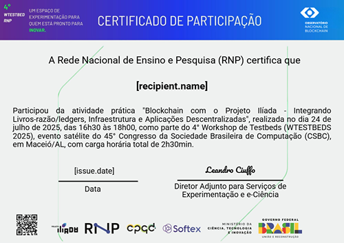 Participação na atividade prática "Blockchain com o Projeto Ilíada", realizada no 4° WTESTBEDS 2025 - CSBC 2025.