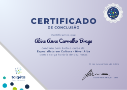 Para ganhar esta medalha e certificado, o aluno concluiu a carga horária do módulo 1 - nível Alba da Certificação Especialista em Cultura e entregou seu trabalho de conclusão de módulo com nota satisfatória.