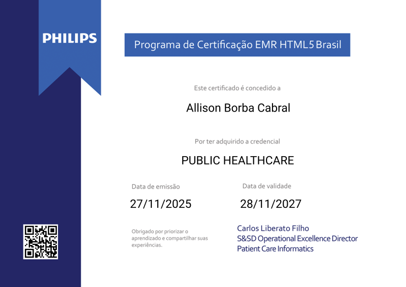 A credencial PROFESSIONAL PUBLIC HEALTHCARE contém uma avaliação, específica para o Brasil, abrangendo os processos do sistema público de saúde brasileiro - SUS.