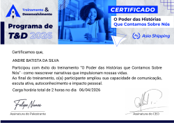 Este treinamento convida os participantes a explorar como as narrativas pessoais moldam identidade, comportamento e escolhas ao longo da vida. A partir de reflexões guiadas e exercícios práticos, cada pessoa aprende a identificar padrões nas histórias que conta sobre si, ressignificar perspectivas limitantes e construir uma narrativa mais consciente, fortalecedora e coerente com seus objetivos.