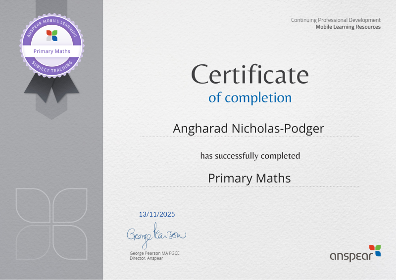 Awarded for completing the Primary Maths CPD course from Anspear.