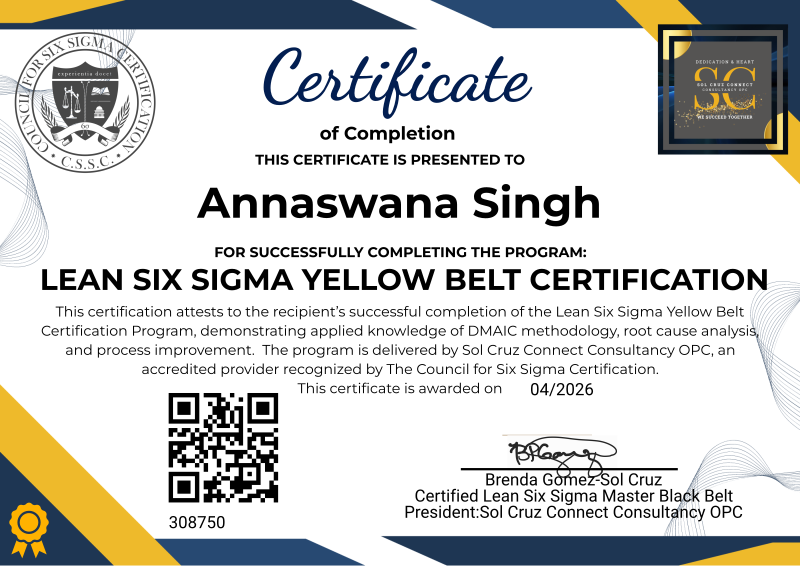 The Lean Six Sigma Yellow Belt Certification equips participants with the practical knowledge and skills needed to support and contribute to process improvement initiatives within their teams and organizations.