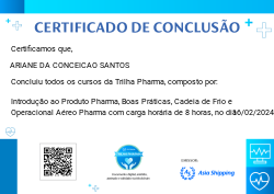 A Trilha Pharma é mais um Badge do programa de certificação da Asia Shipping. Através dessa trilha você será apresentado(a) a requisitos fundamentais do mundo Pharma, tais como: maiores informações das nossas certificações, princípios de boas práticas para operações de interesse a saúde, nossos cases de sucesso e cadeia do frio.