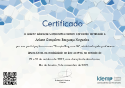 São 12 horas de mergulho nas técnicas, teorias e práticas com análises de casos que não apenas ensinam a arte de contar histórias, mas também a transformar informações em experiências emocionantes e memoráveis. Nossa abordagem prática e interativa permitirá que você aplique imediatamente os conceitos aprendidos em diferentes contextos, como apresentações, marketing, negociações e liderança.