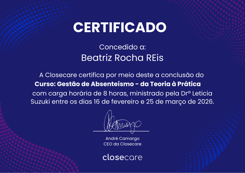 O curso de Gestão de Absenteísmo: da Teoria à Prática aconteceu entre os dias 16 de fevereiro e 25 de março. As aulas foram ministradas pela Drª Leticia Suzuki (https://www.linkedin.com/in/leticia-cristina-suzuki-621585131/). O curso foi composto por oito aulas que abordaram os seguintes tópicos: