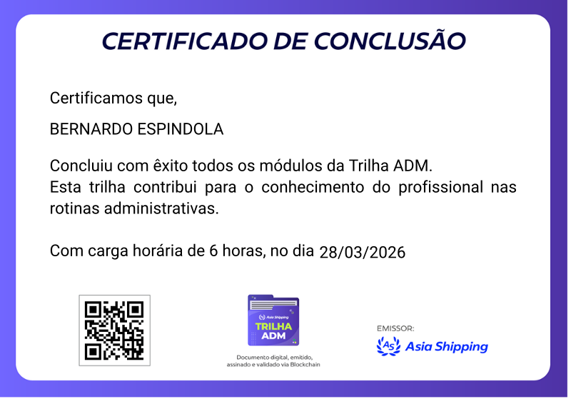 Esta badge é concedida aos colaboradores que completaram com sucesso a Trilha ADM, que teve como objetivo preparar o colaborador para atuar com excelência em rotinas administrativas essenciais.