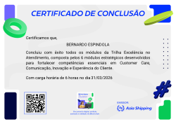 Esta badge certifica a conclusão da Trilha Excelência em Atendimento. O participante desenvolveu habilidades fundamentais para atuar com empatia, proatividade, visão consultiva e excelência no relacionamento com clientes internos e externos.
