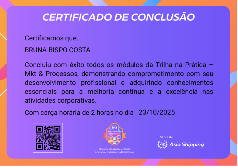 Certifica a conclusão da Trilha na Prática – Mkt & Processos, referente as campanhas de marketing e otimização de processos internos.