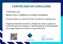A Trilha Top Secret é mais uma badge do programa de certificação da Asia Shipping. Nela você terá a oportunidade de conhecer fatos importantes sobre toda nossa Gestão da Cadeia Logística, além de informações mais aprofundadas sobre conscientização de Ameaça e Identificação de vulnerabilidades e o Programa de Operador Econômico Autorizado, aplicados em nossa companhia.