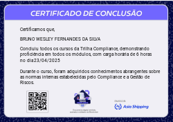 A Trilha Compliance é mais uma Badge do programa de certificação da Asia Shipping. Com ela você terá a oportunidade de conhecer mas sobre Compliance na Asia Shipping, como também Gestão de Riscos, suas principais definições e etapas de identificação.