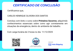 Esta badge digital certifica a conclusão do Treinamento de Primeiros Socorros da Asia Shipping, demonstrando um compromisso proativo com a segurança e a saúde de todos no ambiente de trabalho.