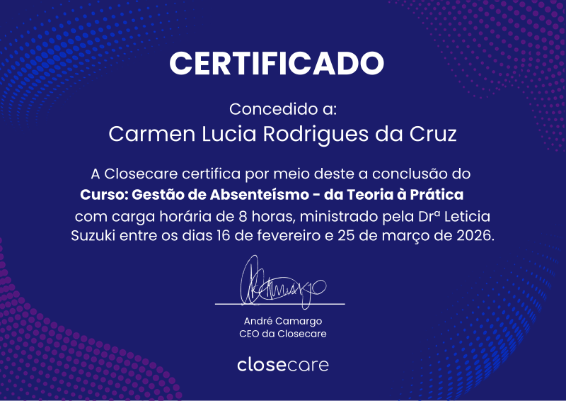 O curso de Gestão de Absenteísmo: da Teoria à Prática aconteceu entre os dias 16 de fevereiro e 25 de março. As aulas foram ministradas pela Drª Leticia Suzuki (https://www.linkedin.com/in/leticia-cristina-suzuki-621585131/). O curso foi composto por oito aulas que abordaram os seguintes tópicos: