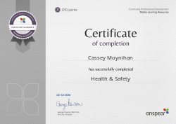 Awarded for completing the Health & Safety CPD course from Anspear.
