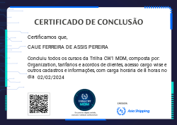 A Trilha CW1 MDM é mais um Badge do programa de certificação da Asia Shipping. Com ela você terá a oportunidade de conhecer melhor sobre as demandas do MDM na Asia Shipping, como ter mais detalhes dos procedimentos de cadastro, com suas etapas e definições.