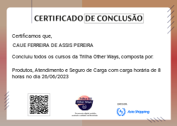Para receber este badge foi necessário que o colaborador concluísse todas as etapas da Trilha Other Ways em tempo hábil atingindo nota mínima de 8.0 nos testes de conhecimento aplicados.